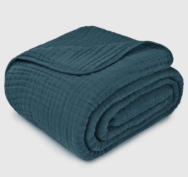 Large premium Muslin Blanket — offering exception comfort in a stylish design this muslin blanket keeps you warm when your snuggling up on the couch, lounging in bed, or trying to stay a bit warmer on those cooler nights.
