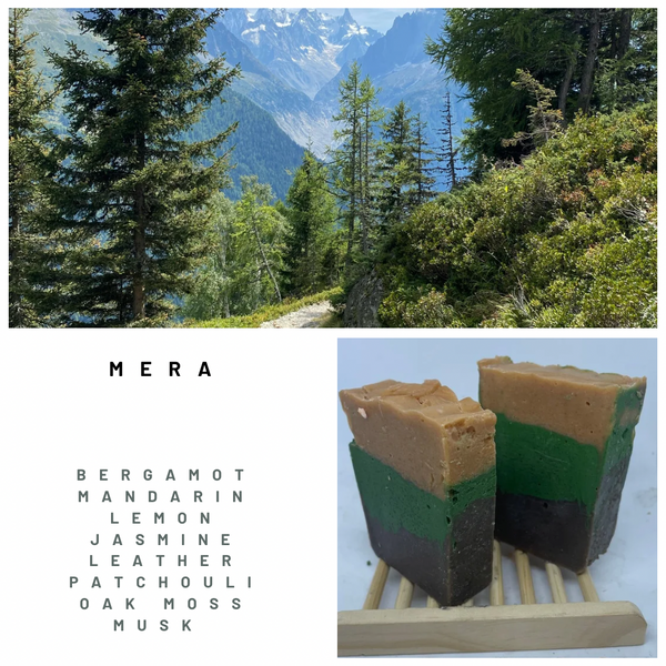 The MERA fragrance has notes of bergamot, mandarin, lemon, iris, jasmine, leather, patchouli, oakmoss, musk